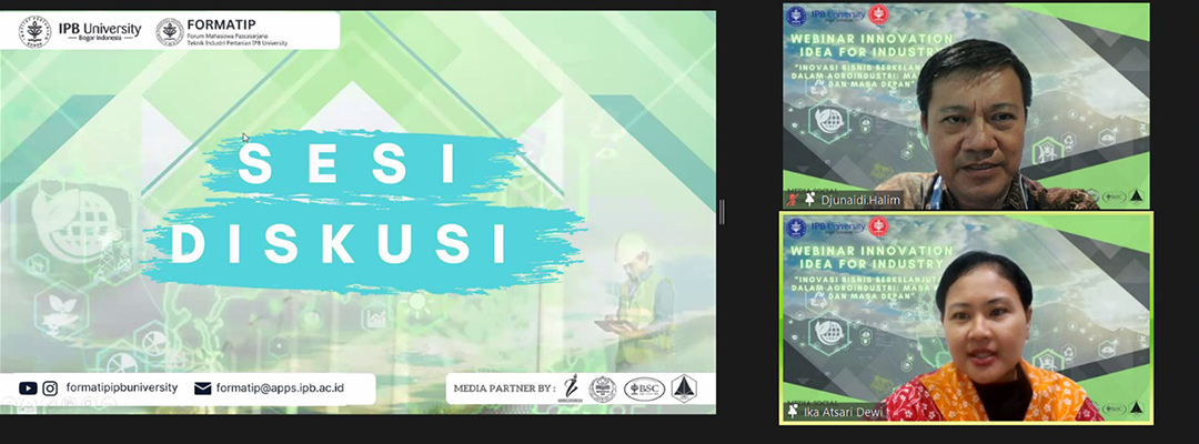 Narasumber lainya yang hadir pada acara ini adalah Direktur Jendral Industri Agro Kementerian Perindustrian Republik Indonesia serta Ibu Dr. Elisa Anggraeni, S.TP., M.Sc., IPM. (Dosen Teknik Industri Pertanian IPB).