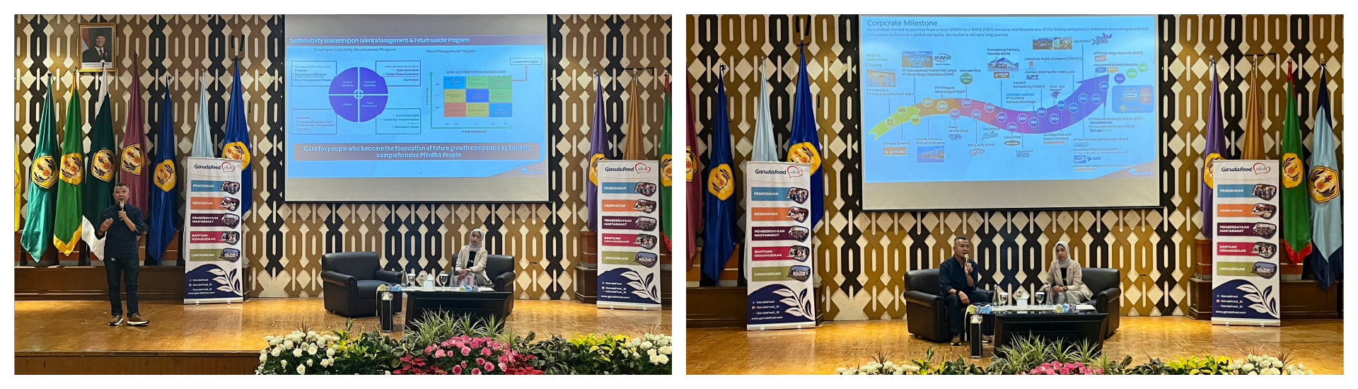 Kegiatan ini menjadi jembatan penting antara dunia akademik dan industri, sekaligus menumbuhkan optimisme generasi muda dalam menyongsong masa depan. Selain itu, Bapak Sugeng juga menyinggung praktik baik yang telah diterapkan oleh Garudafood melalui prinsip 3B: Branding, Below the line, dan Building distribution. Strategi ini terbukti efektif dalam memperkuat posisi produk di masyarakat, sekaligus menjadi contoh nyata bagaimana korporasi membangun daya saing dengan tetap dekat dengan konsumen.