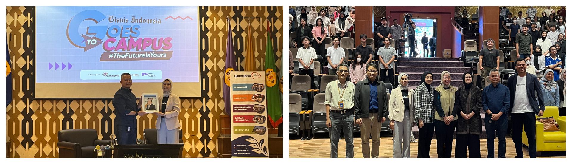 Sumedang, 23 September 2025 - Bapak Sugeng Suharyono, Commercial Director PT Garuda Beverage Sukses (GBS) tampil sebagai salah satu pembicara di hadapan ratusan mahasiswa pada kuliah umum di Universitas Padjadjaran. Kegiatan ini merupakan rangkaian acara literasi finansial dan digital yang mengangkat tema besar “The Future is Yours”, hasil kolaborasi antara Sahabat Inspirasiku Garudafood dan Bisnis Indonesia.