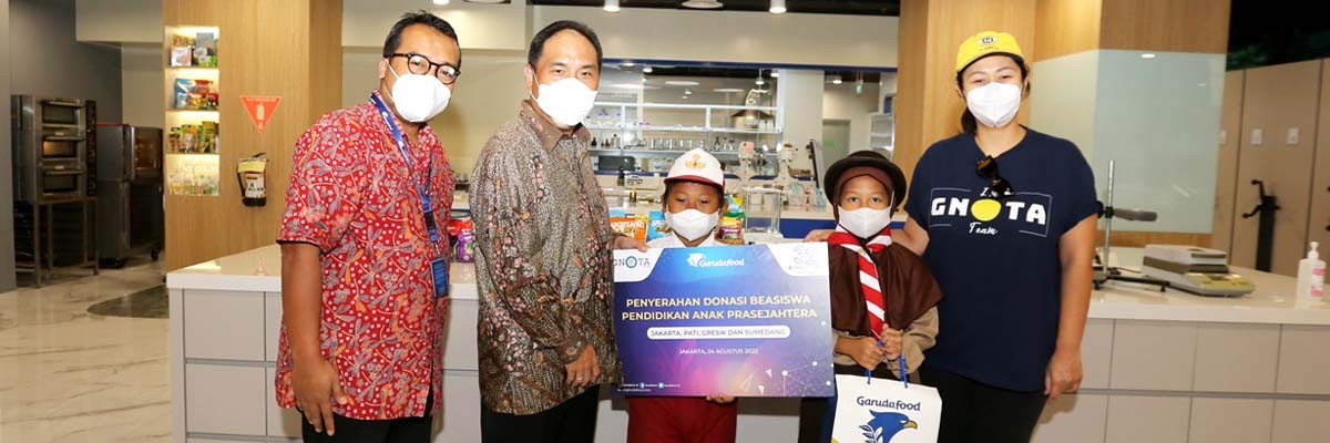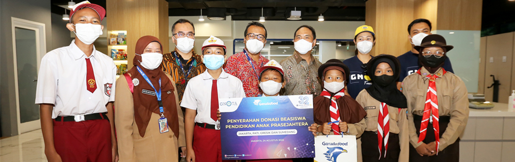 Jakarta, 24 Agustus 2022 - PT Garudafood Putra Putri Jaya Tbk (Garudafood) sebagai salah satu perusahaan makanan dan minuman terdepan di Indonesia melalui Yayasan Gerakan Nasional Orang Tua Asuh (GNOTA) menyalurkan ‘Beasiswa Pendidikan Anak Prasejahtera’ pada Rabu, 24 Agustus 2022 di kantor pusat Garudafood, Jakarta Selatan.