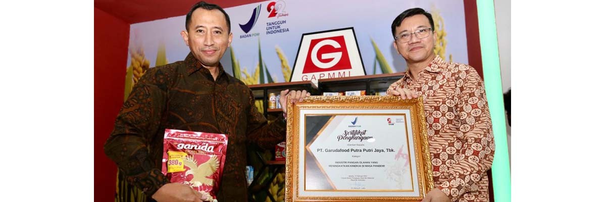 Jakarta, 15 Februari 2023 - Badan Pengawas Obat dan Makanan (BPOM) memberikan apresiasi kepada sejumlah mitra terkait selama masa pandemi Covid-19. Salah satunya PT Garudafood Putra Putri Jaya Tbk (Garudafood) sebagai mitra Industri Obat dan Makanan dengan kategori industri pangan olahan yang produktif mendukung ketahahan pangan berkelanjutan, implementasi sistem manajemen mutu yang baik dan peningkatkan kinerja di masa pandemi.