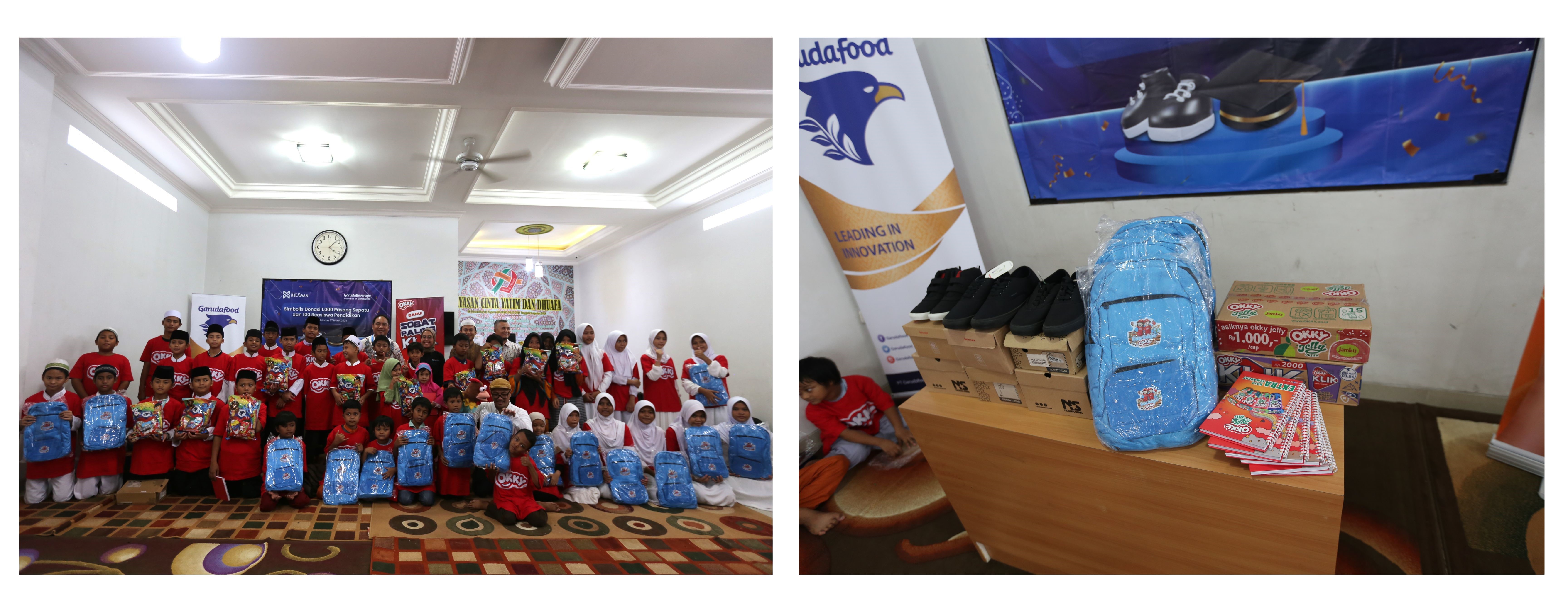 Tangerang Selatan, 27 Maret 2024 – PT Garuda Beverage Sukses (Garuda Beverage) menyalurkan lebih dari Rp 200 juta dalam bentuk beasiswa pendidikan dan bantuan 1.000 pasang sepatu sekolah kepada anak-anak tingkat SD-SMP di Pulau Jawa. Donasi berupa 1.000 pasang sepatu diinisiasi oleh brand Okky Jelly Drink serta merupakan rangkaian program “Ramadhan Berbagi Garudafood” dalam menyambut bulan suci Ramadhan 1445 H.