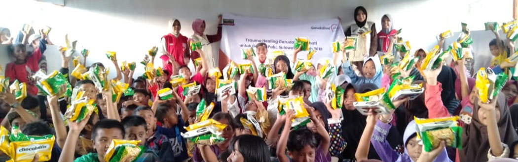 Garudafood Sehati bersama Tim SNS dan Kampung Dongeng Indonesia kembali melaksanakan kegiatan Trauma Healing untuk korban Gempa Palu. Setelah sebelumnya dilaksanakan pada tanggal 19 – 21 Desember 2018 di 10 titik pengungsian yaitu : Posko Jl Thamrin, Camp Terpadu Petobo, Posko Lapangan Golf/GOR Madan, Posko Baiya, Tawaeli, Camp Terpadu Layana (Dupa), Pengungsian di Mesjid Agung, Pengungsian di Duyu, Camp Terpadu Balaroa, Posko Tipo 1 dan Posko Gawalise Tipo.