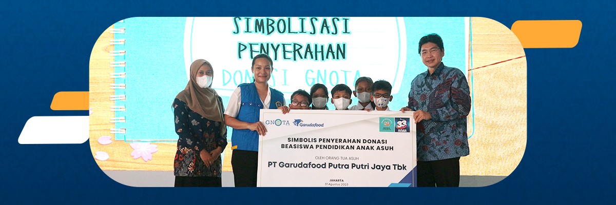 Jakarta, 31 Agustus 2023 - PT Garudafood Putra Putri Jaya Tbk (Garudafood) sebagai salah satu perusahaan makanan dan minuman terdepan di Indonesia kembali menyalurkan ‘Beasiswa Pendidikan Anak Prasejahtera’ kepada 356 anak asuh melalui Yayasan Gerakan Nasional Orang Tua Asuh (GNOTA) pada Kamis, 31 Agustus 2023 di kantor pusat Garudafood, Jakarta Selatan.