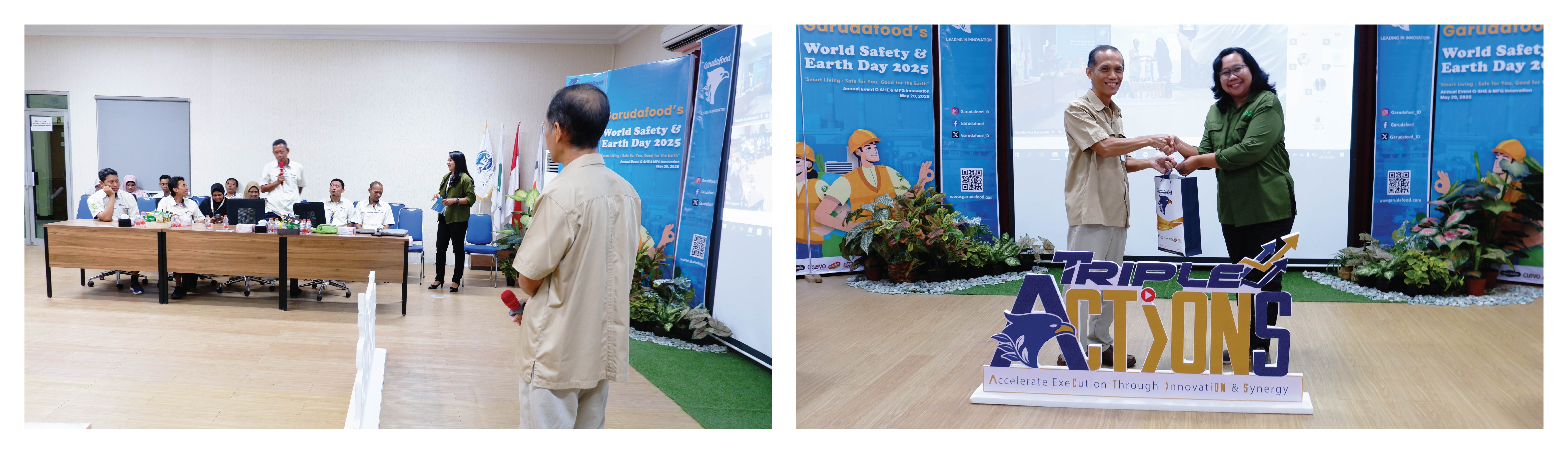 Direktur Garudafood, Bapak Fransiskus Johny, mengajak seluruh karyawan untuk terus memperkuat koordinasi, sinergi, dan kolaborasi dalam membangun budaya K3 yang mandiri serta menjaga kelestarian lingkungan secara konsisten.
