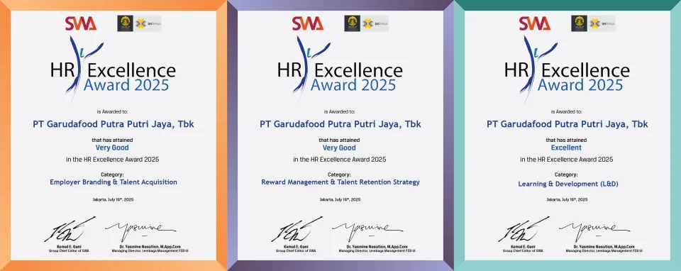 Pencapaian Garudafood di ajang HR Excellence Awards 2025 ini menjadi bukti nyata dari komitmen perusahaan dalam membangun sumber daya manusia yang berdaya saing tinggi, adaptif, dan siap menghadapi tantangan masa depan. Dengan terus mengedepankan inovasi di bidang pengembangan SDM, Garudafood menegaskan perannya sebagai perusahaan yang tidak hanya berorientasi pada pertumbuhan bisnis, tetapi juga berkomitmen kuat dalam memberdayakan manusia sebagai fondasi utama kesuksesan perusahaan.