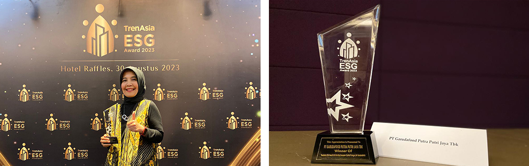 Jakarta, 30 Agustus 2023 - Upaya PT Garudafood Putra Putri Jaya Tbk dalam mengintegrasikan prinsip Environmental, Social, dan Governance (ESG) ke dalam proses bisnis berhasil menghantarkan Garudafood meraih penghargaan ESG pertamanya di ajang TrenAsia ESG Award 2023 kategori The Consumer Cyclical for Sustainability. Penghargaan diterima langsung oleh Head of Corporate Communication and External Relations Department, Dian Astriana, mewakili Garudafood bertempat di Hotel Raffles Kuningan Jakarta.