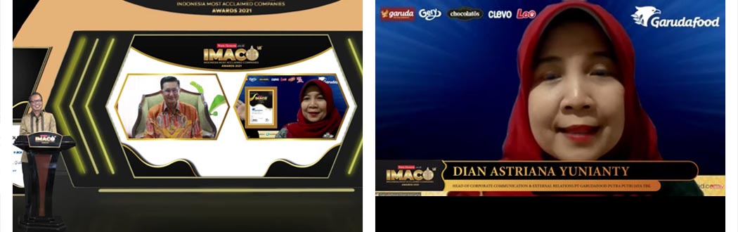 Acara Awarding dilaksanakan secara virtual pada Rabu 28 April 2021 ini dihadiri oleh Bpk. Muhammad Ihsan (CEO & Chief Editor wartaekonomi.co.id) dan Bpk. Fadel Muhammad (Founder & PresKom WE) serta 80 orang perwakilan penerima penghargaan. Ibu Dian Astriana (Head of Corporate Communication & Eksternal Relations PT Garudafood Putra Putri Jaya Tbk) secara simbolis menerima penghargaan yang diserahkan langsung oleh Bpk. Muhammad Ihsan.