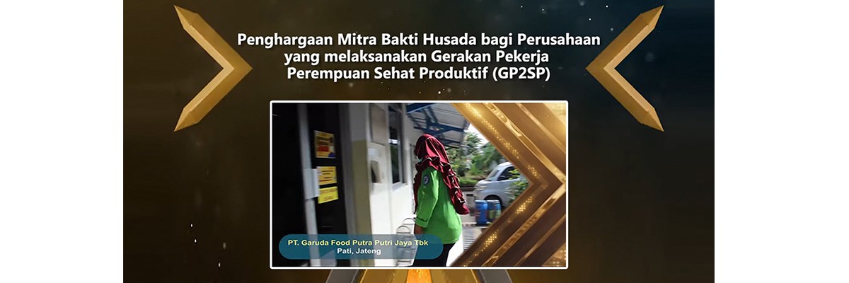 Jakarta, 12 November 2021 - Kementerian Kesehatan (Kemenkes) Republik Indonesia memberikan penghargaan Mitra Bakti Husada (MBH) 2021 kepada perusahaan yang menjalankan Gerakan Pekerja Perempuan Sehat Produktif (GP2SP) pada peringatan Hari Kesehatan Nasional (HKN) ke-57 tahun 2021 secara daring/virtual kepada PT Garudafood Putra Putri Jaya Tbk (Pabrik Pati, Jawa Tengah).