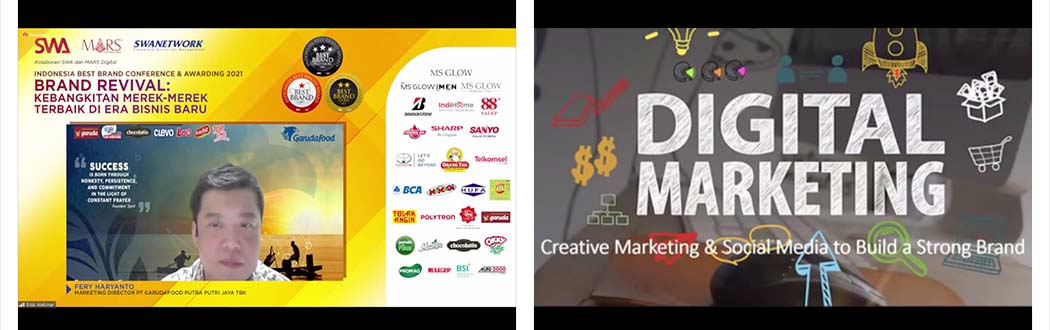 Pada kesempatan yang sama, Marketing Director PT Garudafood Putra Putri Jaya Tbk, Bpk. Ferry Haryanto juga berkesempatan menjadi salah satu pembicara pada Konferensi IBBA 2021 yang mengangkat tema besar ‘Brand Revival: Kebangkitan Merek-merek Terbaik di Era Bisnis Baru’. Beliau menyampaikan materi mengenai Digital Marketing dengan tema Creative Marketing & Social Media to Build a Strong Brand.