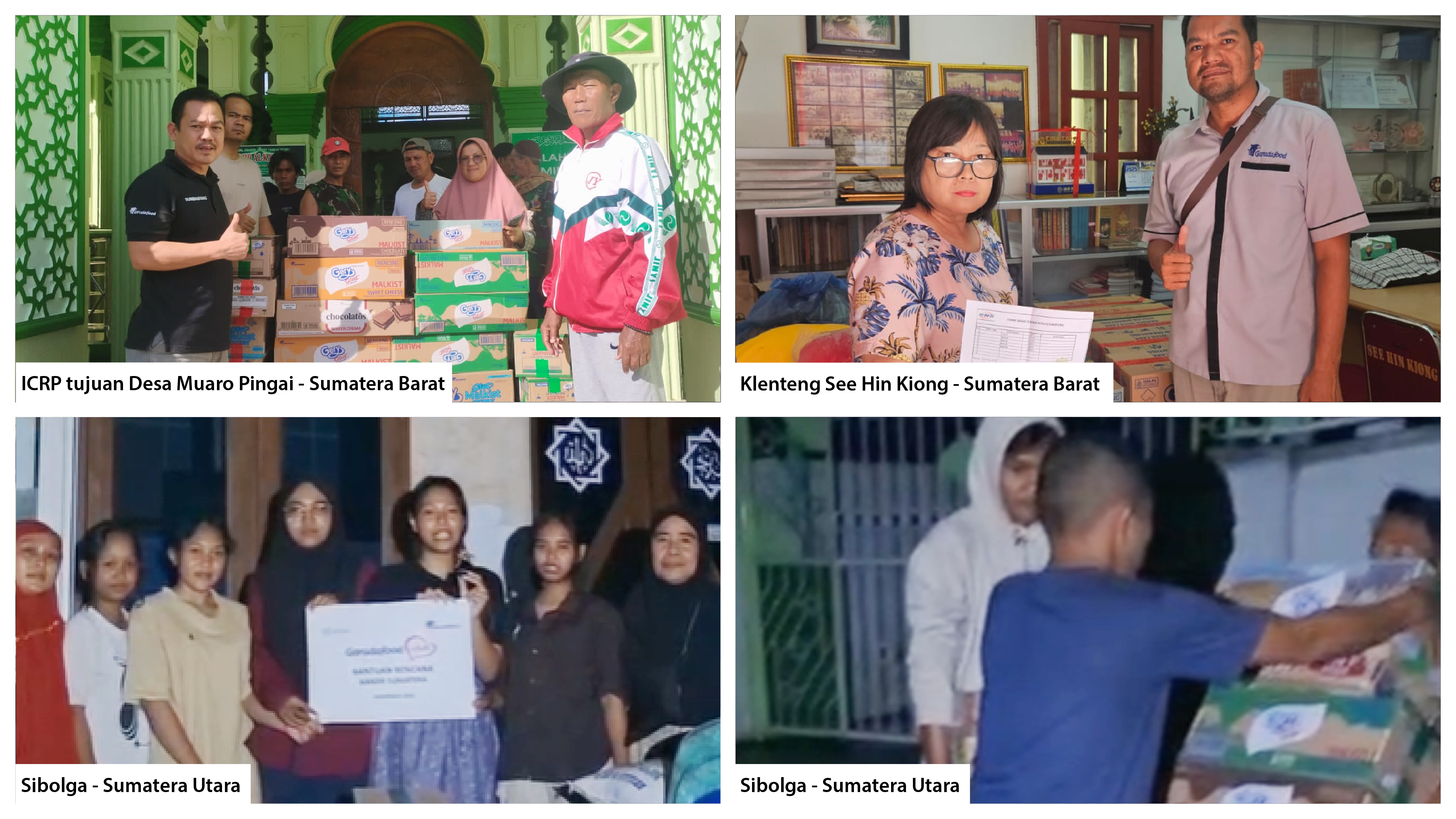 Sebagai bentuk kepedulian dan komitmen terhadap tanggung jawab sosial perusahaan, PT Garudafood Putra Putri Jaya Tbk melalui Garudafood Sehati bergerak cepat melakukan aksi kemanusiaan. Penyaluran bantuan ini bekerja sama dengan sejumlah mitra kemanusiaan, yaitu Sekolah Relawan, Keluarga Buddhayana Indonesia (KBI), GAPMMI, Klenteng See Hin Kiong, dan ICRP dalam rangka mendukung upaya penanganan darurat bagi masyarakat terdampak.