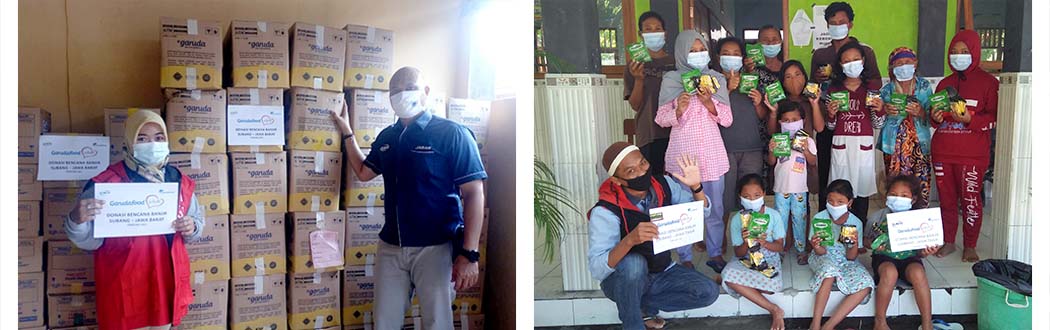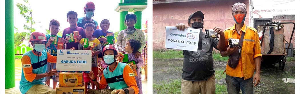 Melihat duka yang dialami oleh saudara-saudara kita, maka tim Garudafood Sehati Pati dan PT Sinarniaga Sejahtera (PT SNS) kembali menyalurkan lebih dari 1.800 karton produk Garudafood kepada ratusan korban bencana alam bulan februari 2021 seperti Banjir di Pati – Jawa Tengah, Banjir di Subang – Jawa Barat, Banjir di Jombang – Jawa Timur, Banjir di Jabeka (Jakarta, Bekasi dan Karawang) serta Banjir di Lebak – Banten. Bantuan ini juga diberikan kepada masyarakat yang terdampak pandemi COVID-19. Seluruh kegiatan penyaluran donasi ini menerapkan protokol kesehatan yang ketat dan berkolaborasi dengan berbagai mitra eksternal seperti Kampung Dongeng Indonesia, Sekolah Relawan, Sekolah Bersama, Last Wish Foundation, FoodCycle dan Daruut Tauhiid Peduli.