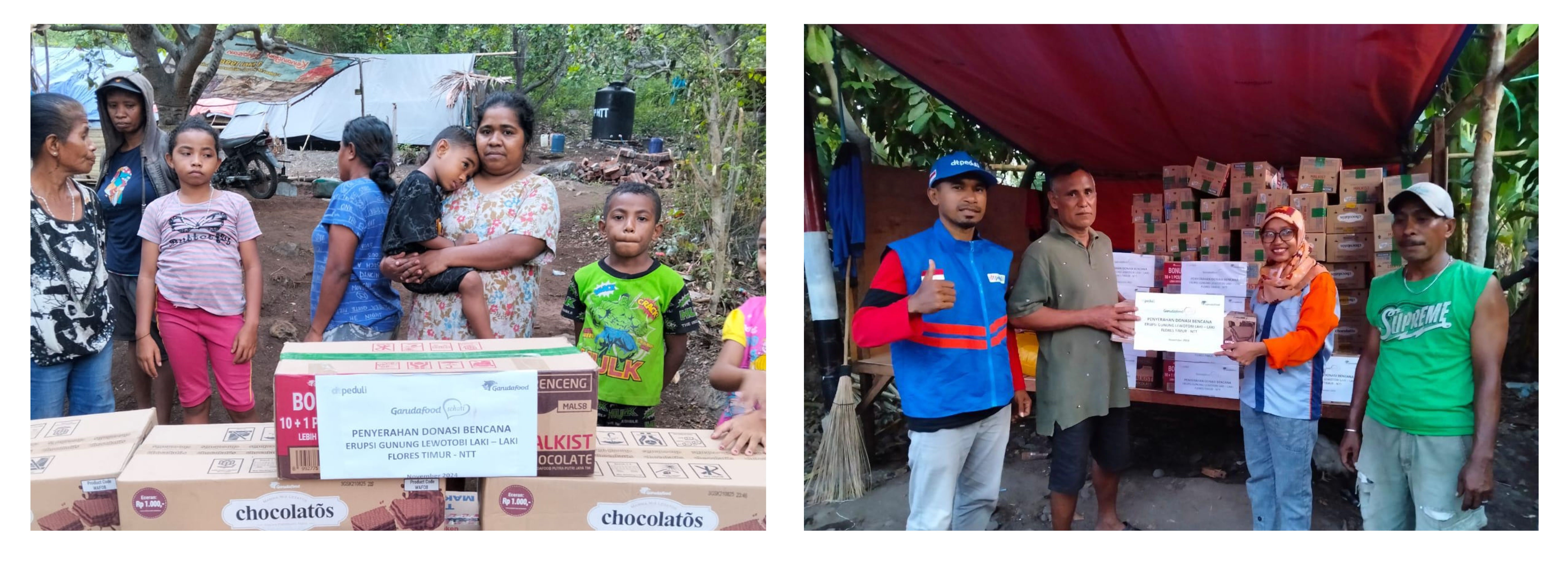 Di tengah musibah yang terjadi, semangat gotong royong dan kepedulian terus menyala. PT Garudafood Putra Putri Jaya Tbk (Garudafood) bersama dengan Sekolah Relawan dan Daruut Tauhiid (DT) Peduli langsung bergerak menyalurkan ratusan karton bantuan makanan siap saji berupa biskuit Gery Saluut Malkist dan Wafer Chocolatos dalam upaya meringankan penderitaan para penyintas bencana di beberapa posko pengungsian di antaranya di Desa Konga dan Desa Kobasoma, Kec. Titehena, Desa Pululera, Kec. Wulanggitang, dan Desa Nobo, Kec. Ile Boleng, Kab. Flores Timur. Bantuan yang disalurkan saat ini masih terus bergerak ke posko–posko lainnya dan seluruhnya merupakan hasil dari partisipasi perusahaan dan karyawan Garudafood Group.