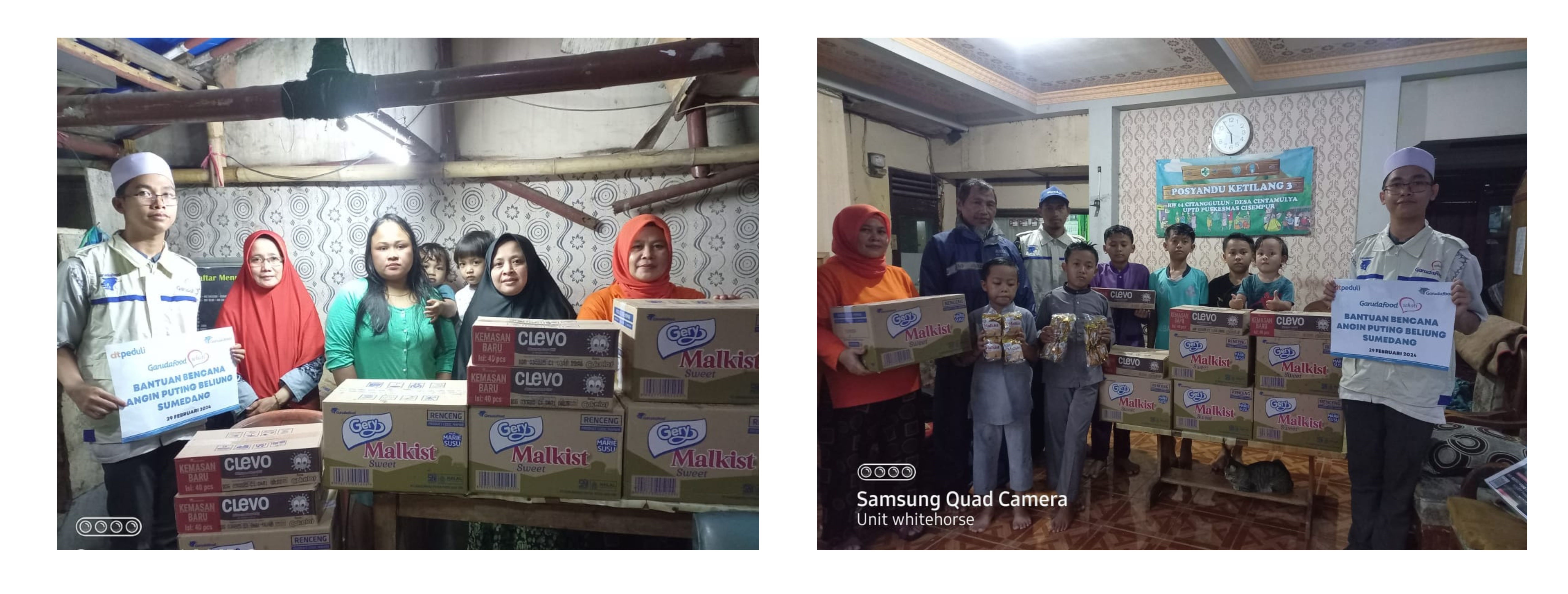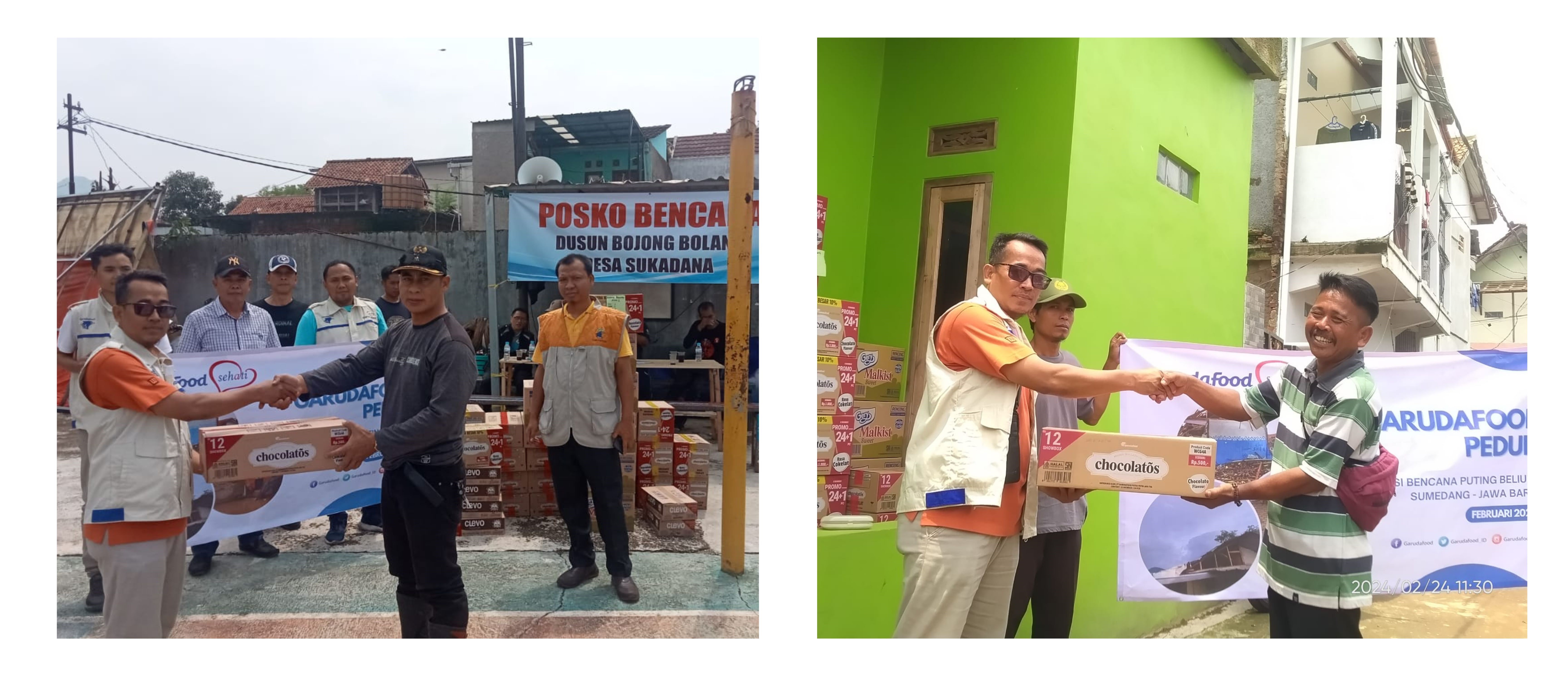 Sebelumnya, pada saat musibah terjadi fokus utama perusahaan adalah keselamatan karyawan dan keluarganya, sehingga Garudafood melalui Tim Duta Garudafood Sehati – BU Sumedang langsung bergerak cepat mendata karyawan dan anggota keluarganya yang rumahnya terdampak serta mendistribusikan bantuan awal berupa sembako, sandang, makanan minuman siap konsumsi, dan puluhan produk Garudafood secara langsung pada malam harinya. Di samping itu, Garudafood turut memastikan seluruh karyawan yang terdampak, memiliki tempat bernaung sementara yang layak serta memfasilitasinya dengan memberikan tempat tinggal sementara atau kontrakan hingga waktu yang belum ditentukan. Bantuan yang disalurkan merupakan hasil dari partisipasi perusahaan dan karyawan Garudafood Group.