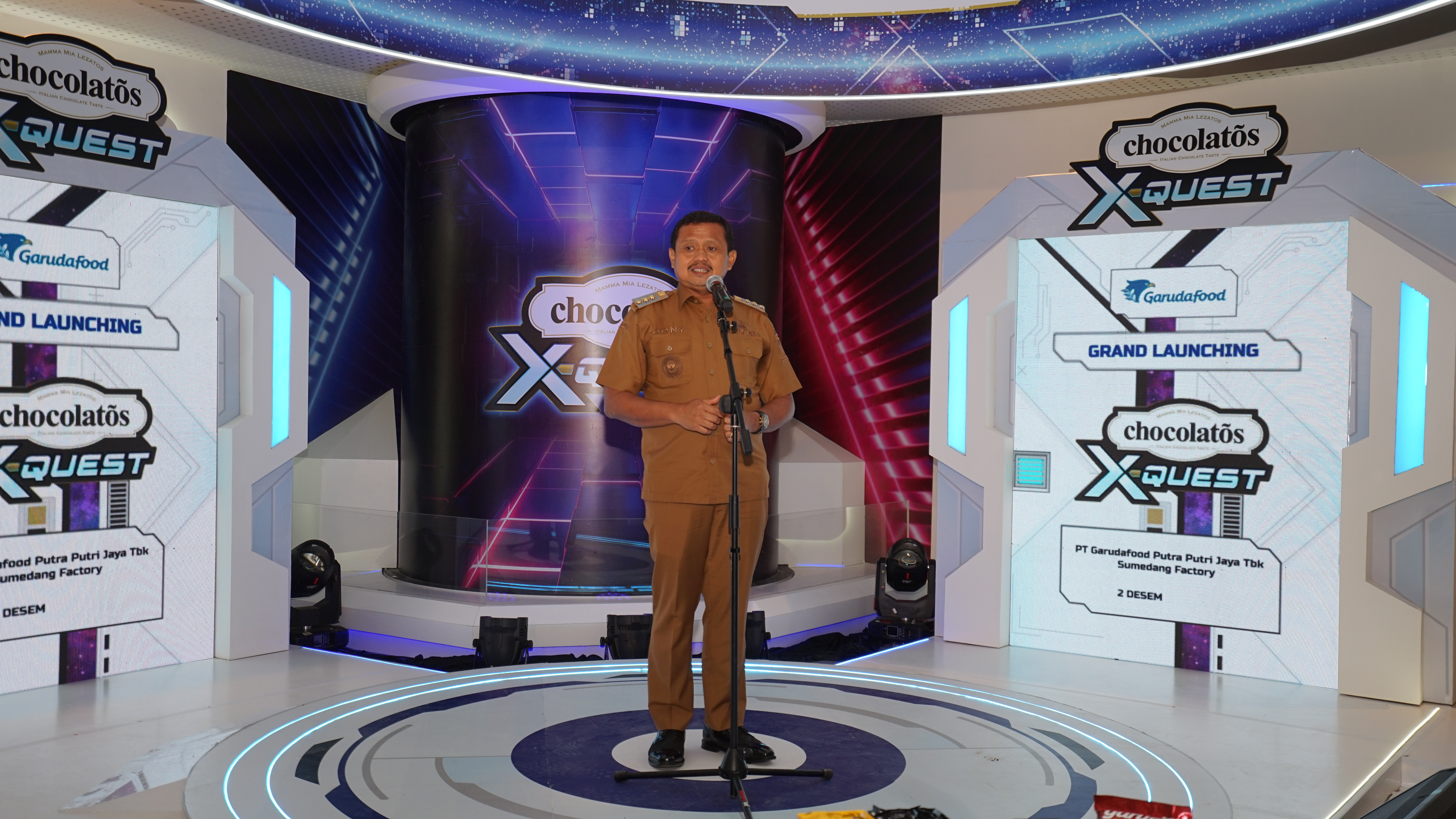 Sumedang, 2 Desember 2025 – PT Garudafood Putra Putri Jaya Tbk (Garudafood) kembali menghadirkan inovasi melalui peluncuran Chocolatos X-Quest, sebuah inovasi wahana eduwisata berbasis teknologi LED Imersif 5DX-perience yang terintegrasi langsung dengan pabrik Garudafood di Sumedang, Jawa Barat. Wahana edukatif bernuansa futuristik ini diresmikan pada Selasa, 2 Desember 2025, oleh Direktur Utama Garudafood Bapak Hardianto Atmadja, Gubernur Jawa Barat Bapak Dedi Mulyadi, Bupati Sumedang Bapak Dony Ahmad Munir, serta Brand Ambassador Chocolatos Cinta Laura.