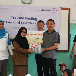 Aksi Trauma Healing Garudafood Sehati untuk Korban Tsunami di Selat Sunda Banten