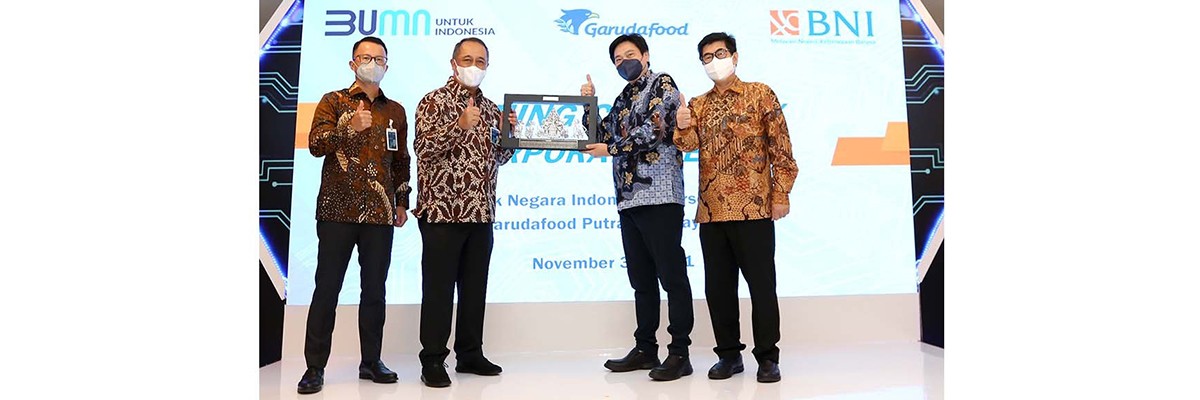 Jakarta, 30 November 2021 - PT Bank Negara Indonesia (Persero) Tbk. (BBNI) memberikan pembiayaan senilai Rp1 triliun kepada PT Garudafood Putra Putri Jaya, Tbk (GOOD). Fasilitas kredit bilateral ini akan digunakan untuk mengakuisisi fasilitas club deal dari sejumlah bank kepada GOOD dalam rangka akuisisi saham PT Mulia Boga Raya, Tbk serta untuk pembiayaan utang bank jangka panjang. Dalam pembiayaan ini BNI memberikan fasilitas kredit investasi dengan jangka waktu pembiayaan selama 60 bulan.