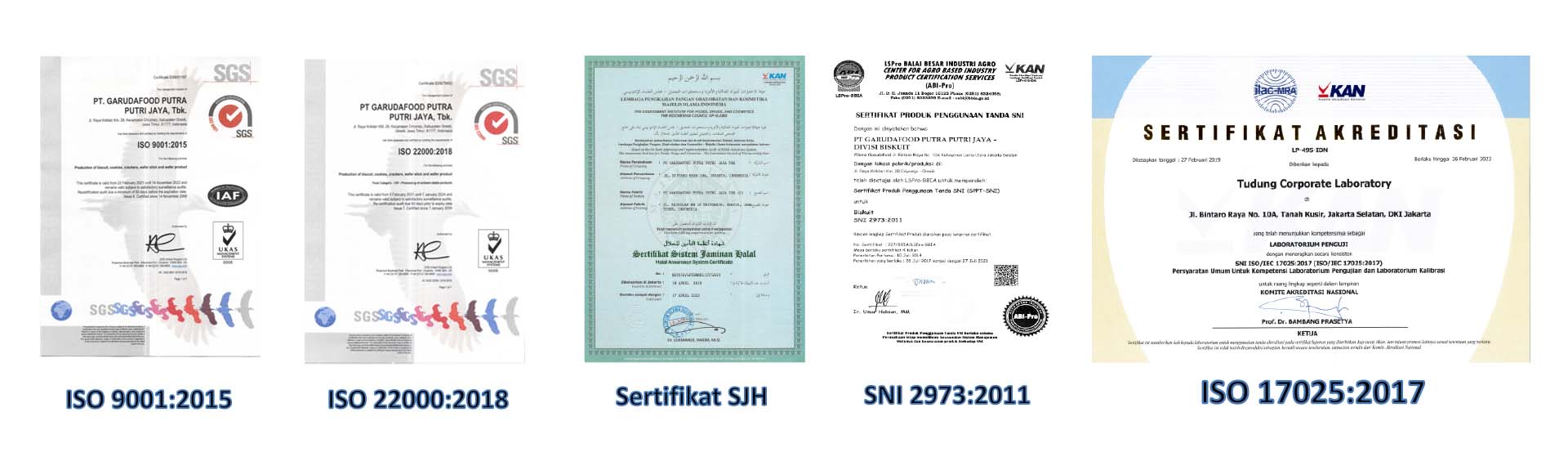 Bukti penerapan system dan SNI Garudafood untuk senantiasa menjaga serta melakukan proses peningkatan yang berkesinambungan terhadap seluruh proses kerja dan proses produksi, agar aman dari semua aspek serta memenuhi peraturan perundangan yang berlaku seperti :