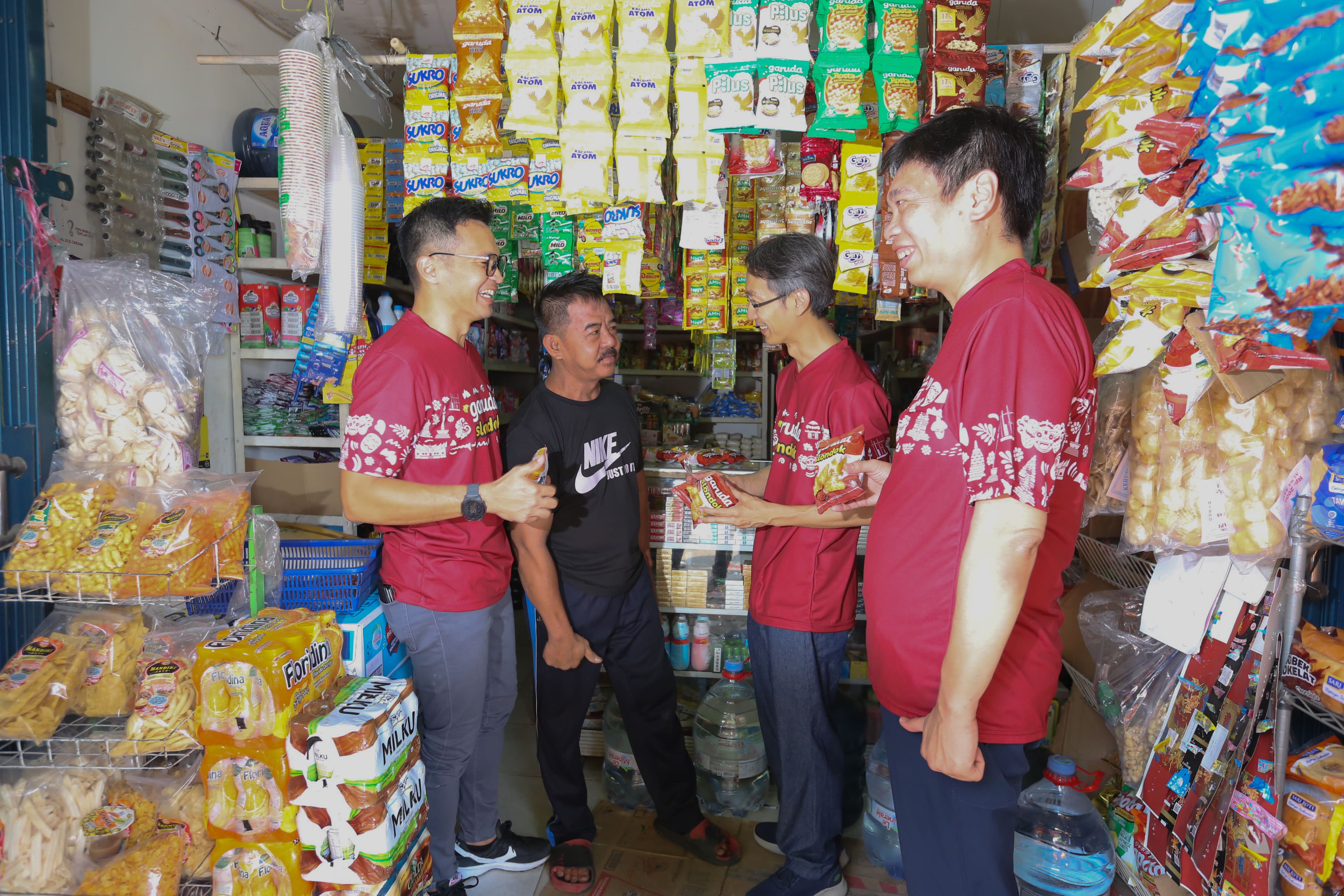 Dalam kegiatan ini, Bapak Hardianto Atmadja, selaku Direktur Utama Garudafood, Bapak Paulus Tedjosutikno, selaku Direktur Garudafood, dan Bapak Ruli Tobing, selaku Direktur Utama PT Sinarniaga Sejahtera – perusahaan afiliasi Garudafood di bidang distribusi, mendatangi pelanggan seraya memperkenalkan Garuda Slondok.