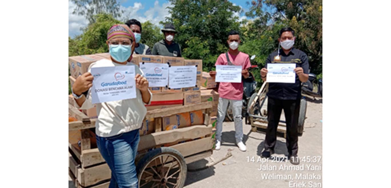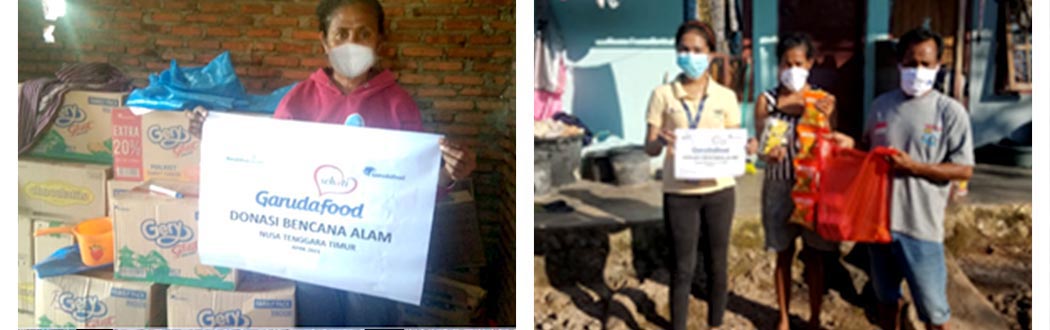 Melihat duka yang dialami oleh saudara-saudara kita di NTT, maka Garudafood Sehati melalui PT Sinarniaga Sejahtera (PT SNS) di Kota Kupang dan Partner SNS (PS) yaitu PS Boge, PS Sumber Berkat dan PS Faromas langsung bergerak untuk menyalurkan lebih dari 1.565 karton produk Garudafood. Koordinasi dilakukan pada 4 April 2021 dengan terlebih dahulu melakukan pemetaan karyawan Garudafood maupun PT SNS yang terdampak. Setelah memastikan distribusi kebutuhan karyawan telah selesai dilaksanakan, maka Tim Garudafood Sehati segera melakukan pemetaan wilayah dengan dampak terparah di sekitar area operasional perusahaan dan kemudian bergerak menyalurkannya. Seluruh kegiatan penyaluran donasi ini menerapkan protokol kesehatan yang ketat dan distribusi dilakukan secepat mungkin namun tetap mempertimbangkan situasi dan kondisi di lapangan. Dalam hal ini, PT SNS juga berkolaborasi dengan berbagai mitra eksternal seperti: BenihBaik.com, Majelis Ulama Indonesia (MUI) Kota Kupang, Keluarga Buddhayana Indonesia (KBI), Tokoh Masyarakat di NTT serta Kampung Dongeng Indonesia dan Rumah Zakat untuk penyaluran donasi bagi warga terdampak di wilayah lainnya.