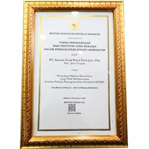 Jakarta, 12 November 2021 - Kementerian Kesehatan (Kemenkes) Republik Indonesia memberikan penghargaan Mitra Bakti Husada (MBH) 2021 kepada perusahaan yang menjalankan Gerakan Pekerja Perempuan Sehat Produktif (GP2SP) pada peringatan Hari Kesehatan Nasional (HKN) ke-57 tahun 2021 secara daring/virtual kepada PT Garudafood Putra Putri Jaya Tbk (Pabrik Pati, Jawa Tengah).