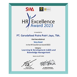 20 Juli 2023 – PT Garudafood Putra Putri Jaya Tbk (Garudafood) berhasil mengukur prestasi dalam ajang The 14th Indonesia HR Excellence Conference & Awarding 2023 yang diselenggarakan oleh SWA Media Group bekerja sama dengan Lembaga Manajemen Fakultas Ekonomi & Bisnis (LMFEB) Universitas Indonesia di Hotel Shangri-La, Jakarta (20/07/2023). Untuk ketiga kalinya, Garudafood meraih penghargaan HR Excellence Award 2023 kali ini pada kategori Learning & Development and Knowledge Management dengan predikat “Very Good”. Penghargaan ini diberikan kepada perusahaan yang dinilai berhasil dalam mengembangkan karyawannya, meningkatkan kemampuan dan pengetahuannya, hingga akhirnya mendorong kesuksesan baik individu maupun perusahaan. Mewakili manajemen Garudafood, penghargaan diterima secara langsung oleh Andika Rajasa selaku Head of Human Capital and General Services Garudafood dan Wara Sri Handayani sebagai Head of Organizational and People Development Garudafood.