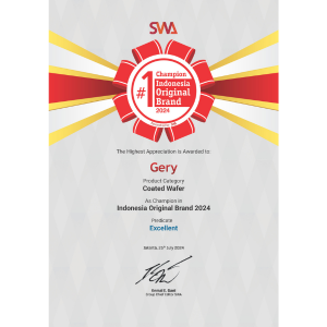 Tahun ini, tiga brand Garudafood, yaitu Gery, Chocolatos, dan Prochiz berhasil meraih peringkat pertama pada kategori wafer bersalut (excellent), wafer stick (very good), dan keju cheddar (very good). Penghargaan yang diterima oleh Garudafood di IOB Award 2024 mencerminkan kepuasan konsumen, loyalitas produk, advokasi brand, dan daya saing terhadap merek asing.