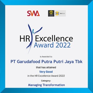 Untuk ke-2 kalinya PT Garudafood Putra Putri Jaya Tbk (GOOD) raih HR Excellence Award 2022 untuk kategori “Managing Transformation” dengan predikat “Very Good" pada Rabu, 27 Juli 2022.