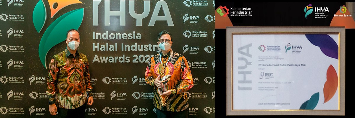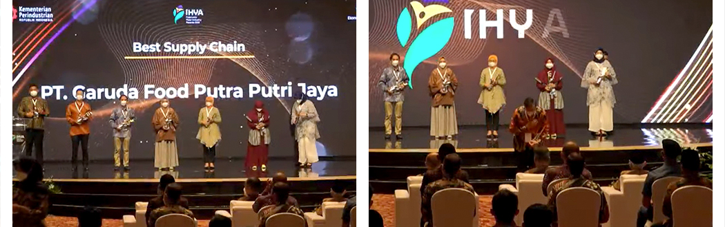 Garudafood berhasil meraih Indonesia Halal Industry Awards 2021 dengan kategori Best Supply Chain yang dinilai konsisten memastikan kualitas bahan baku dan bahan penolong yang digunakan berasal dari sumber-sumber yang halal. Penghargaan diberikan secara langsung oleh Wakil Presiden Republik Indonesia, Bpk. Ma’ruf Amin didampingi Menteri Perindustrian, Bpk. Agus Gumiwang Kartasasmita kepada Bpk. Johannes Setiadharma, Direktur Garudafood di Hotel Indonesia Kempinski pada Jumat (17/12). Turut hadir juga dalam acara ini Menteri Koperasi dan Usaha Kecil dan Menengah Republik Indonesia, Bpk. Teten Masduki dan Menteri Agama Republik Indonesia, Bpk. Yaqut Cholil Qoumas.
