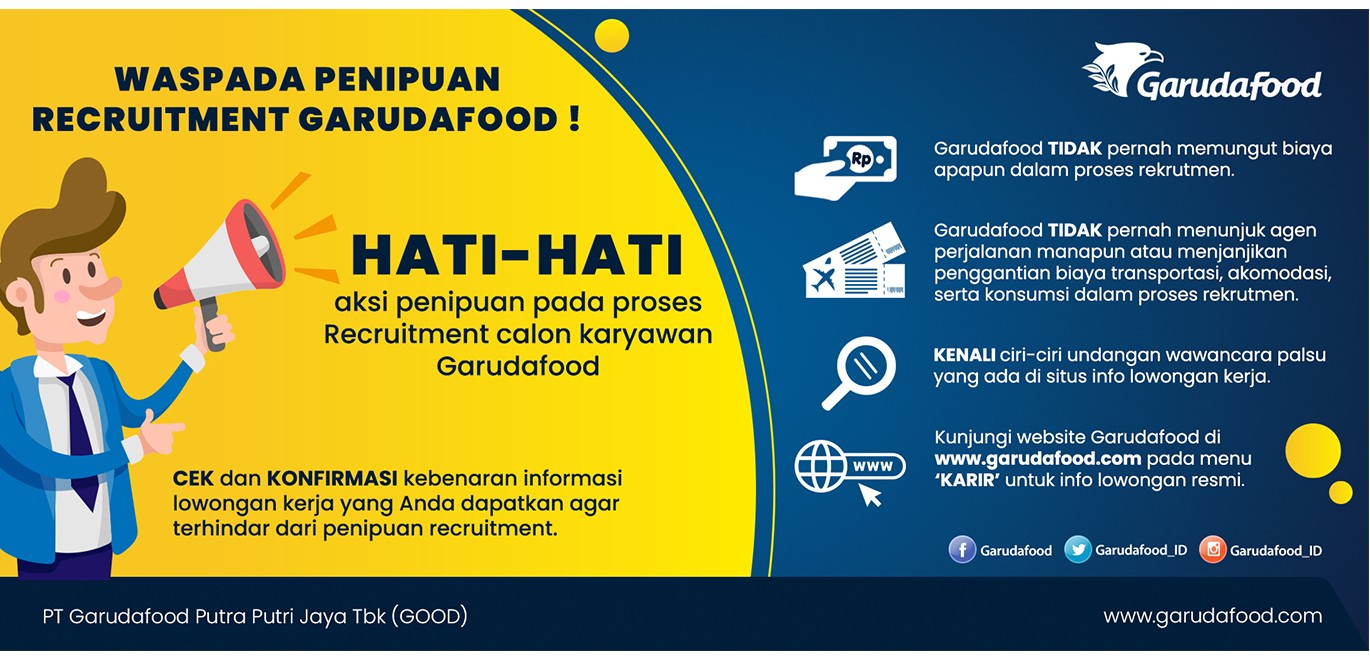 PERNYATAAN RESMI PT GARUDAFOOD PUTRA PUTRI JAYA TBK TENTANG PENIPUAN PROSES RECRUITMENT