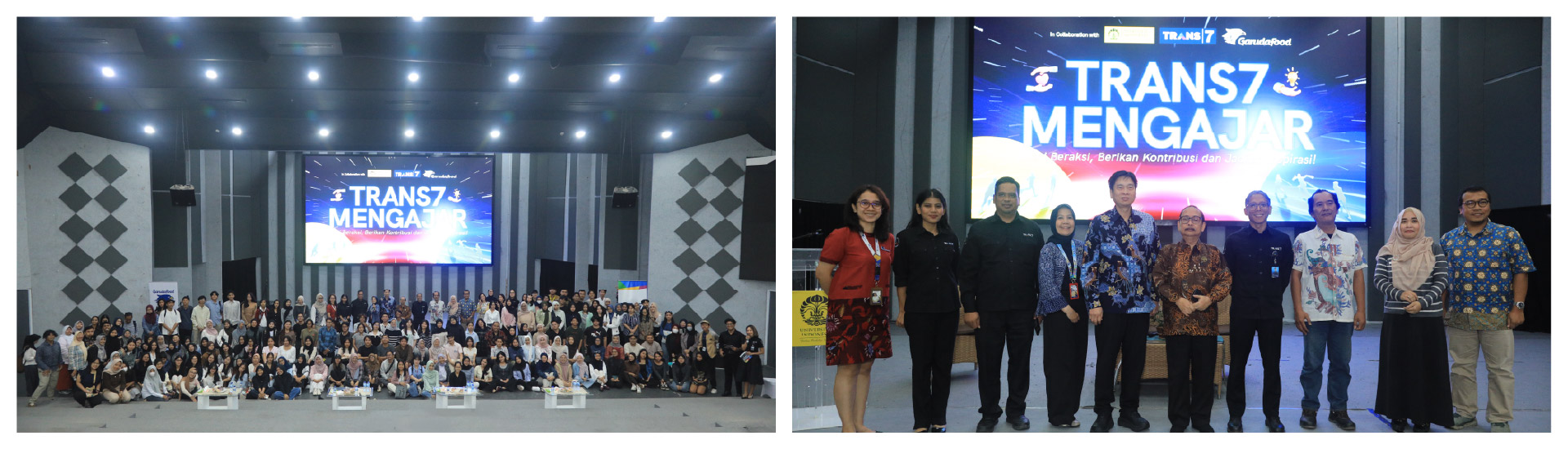 Program TRANS7 Mengajar Jilid VIII tahun ini mengusung tema “Creativity and Leadership” yang mempertemukan dua dunia besar: industri kreatif dan industri FMCG (Fast Moving Consumer Goods) dalam satu panggung edukasi. Kehadiran para pimpinan handal dari kedua industri tersebut menjadi kesempatan emas bagi mahasiswa untuk belajar langsung dari para expert yang berpengalaman.