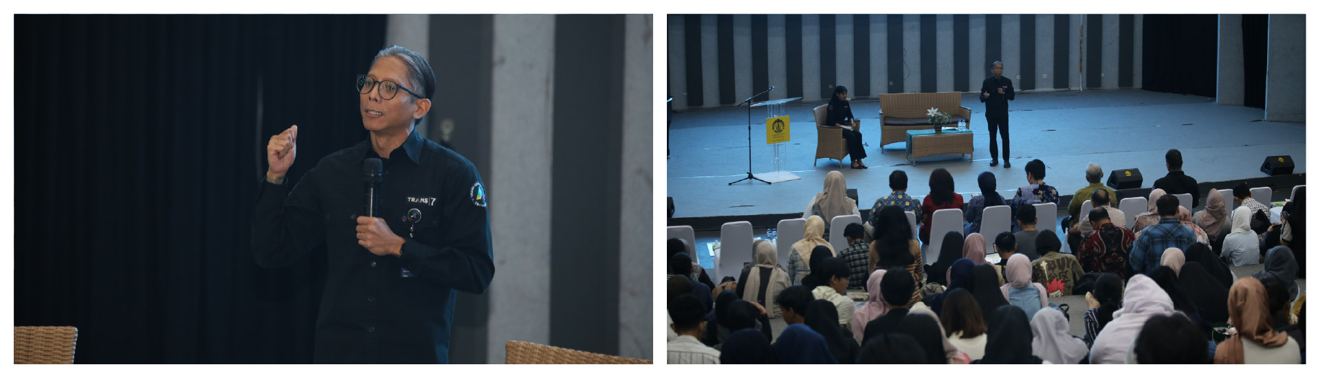 Dari pihak TRANS7, hadir pula sebagai narasumber Bapak Mohammad Ikhsan Soemantoro, Vice President of Production TRANS7 yang berbagi pengalaman mengenai dinamika industri kreatif.