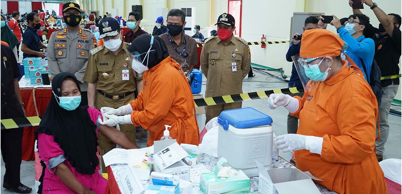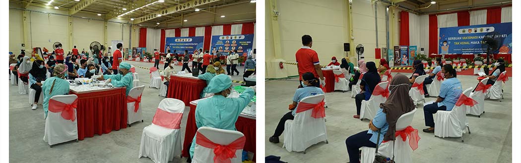 Jakarta – 06 Juli 2021 PT Garudafood Putra Putri Jaya Tbk (“Garudafood”) bekerjasama dengan Pangdam IV Diponegoro dan Forkopimda Pati (Bupati, Wakil Bupati Pati, Kapolres Pati, Kejari pati, DPRD Pati, Sekda Pati dan Dinas Kesehatan) menggelar kegiatan vaksinasi massal untuk seluruh karyawan pabriknya di Pati, Jawa Tengah dengan tema “Serbuan Vaksinasi Kabupaten Pati, Semangat Garudafood untuk Indonesia Lebih Sehat”. Vaksinasi massal ini diselenggarakan dengan tetap menerapkan protokol kesehatan yang ketat dengan target vaksinasi sebanyak 3.000 karyawan Garudafood. Melalui kegiatan ini, Garudafood mendukung upaya pemerintah dalam mewujudkan herd immunity serta mempercepat pemulihan ekonomi Indonesia. Saat ini Indonesia tengah mengalami lonjakan kasus Covid-19 secara masif di beberapa pelosok daerah secara bersamaan.